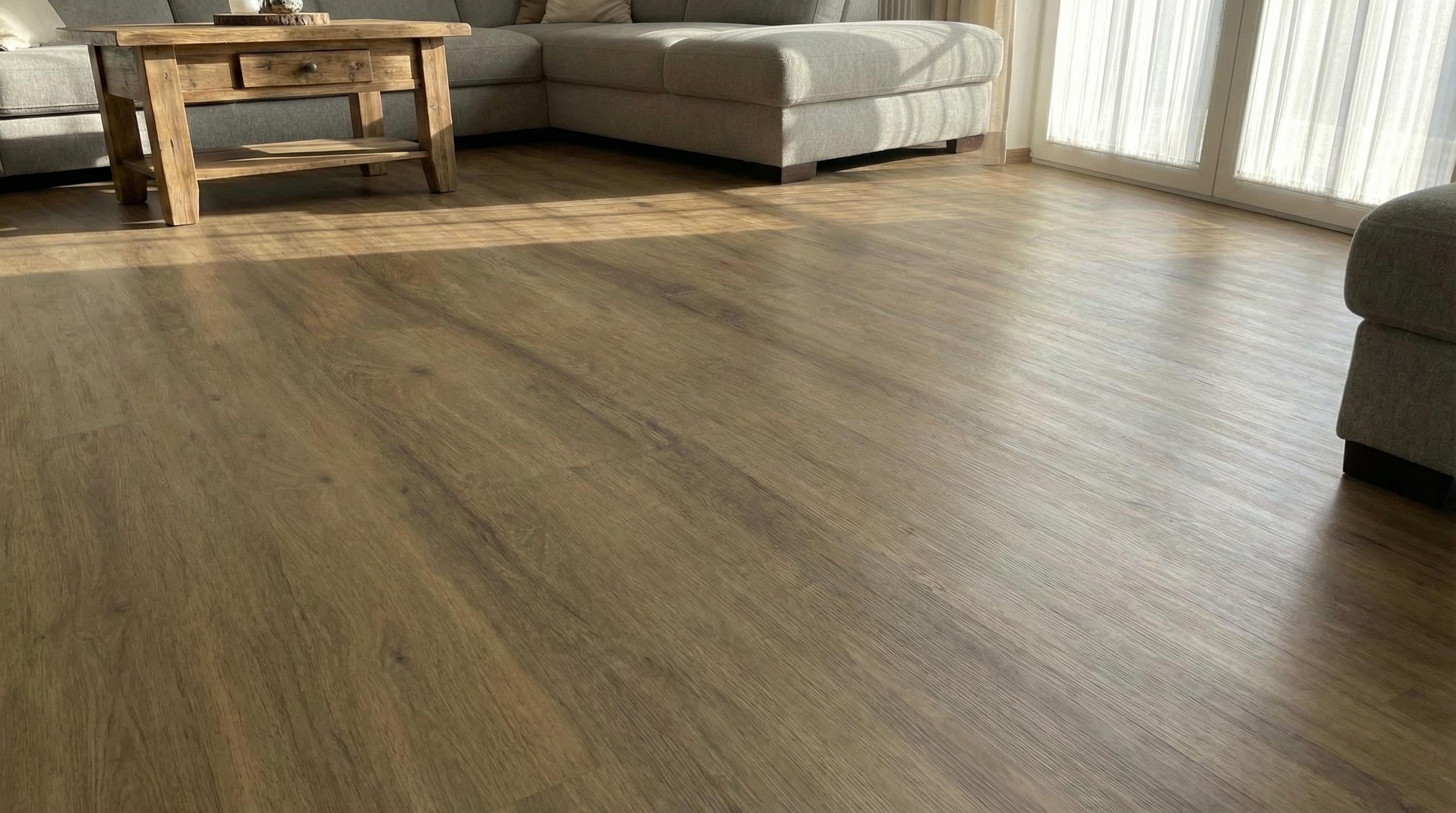 Das naturnahe Holzdekor sieht nicht nur täuschend echt aus, sondern fühlt sich dank der detailreichen 3D-Synchronprägung auch beim Berühren extrem authentisch an – ein Effekt, den kaum ein anderer Vinylboden erreicht. In Kombination mit der natürlichen Microfase und dem harmonischen Verlegemuster entsteht ein hochwertiger Dielen-Look, der optisch begeistert. Dazu bietet unser Premium-Vinyl ein angenehmes Barfußgefühl: fußwarm und ideal für die Nutzung mit Fußbodenheizungen. Oder auch perfekt für Altbauten oder Räume mit niedrigen Türen.