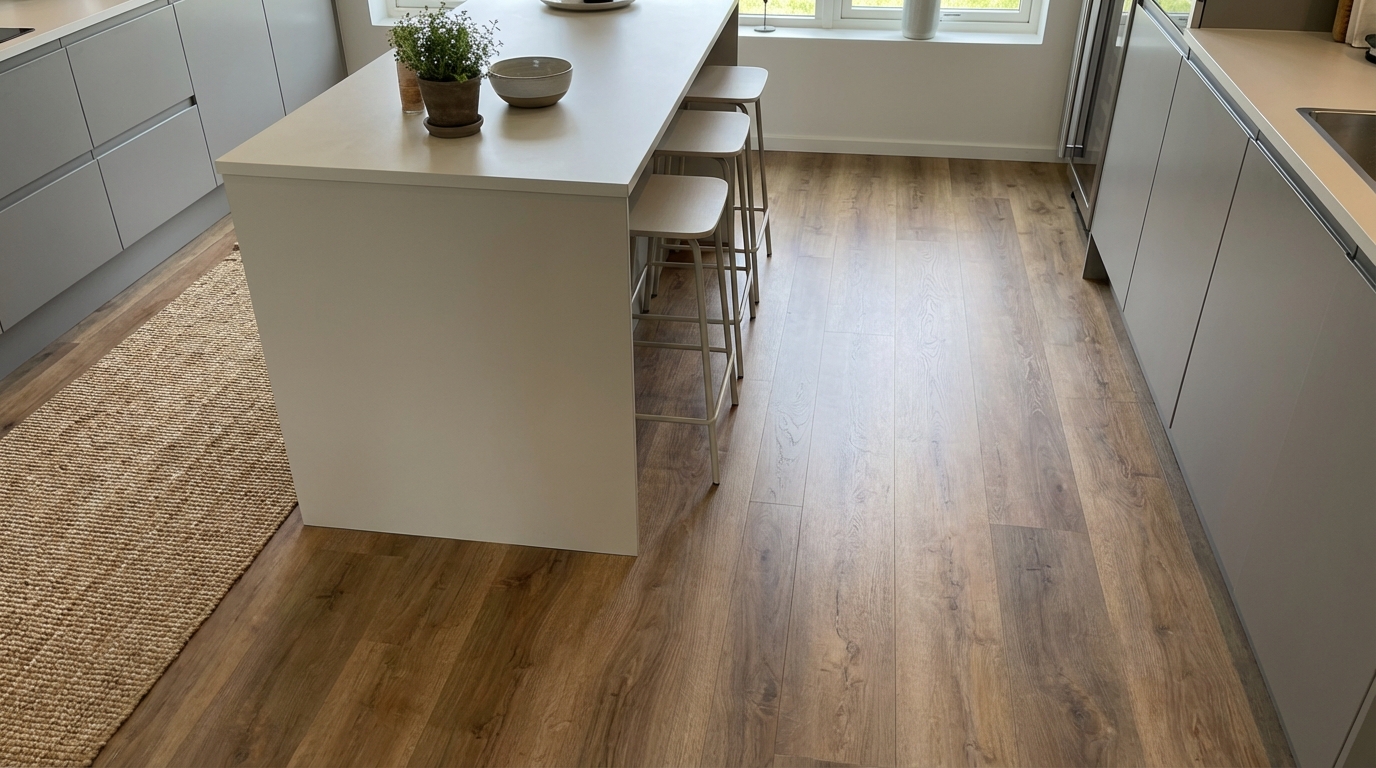Das naturnahe Holzdekor sieht nicht nur täuschend echt aus, sondern fühlt sich dank der detailreichen 3D-Synchronprägung auch beim Berühren extrem authentisch an – ein Effekt, den kaum ein anderer Vinylboden erreicht. In Kombination mit der natürlichen Microfase und dem harmonischen Verlegemuster entsteht ein hochwertiger Dielen-Look, der optisch begeistert. Dazu bietet unser Premium-Vinyl ein angenehmes Barfußgefühl: fußwarm und ideal für die Nutzung mit Fußbodenheizungen. Oder auch perfekt für Altbauten oder Räume mit niedrigen Türen.