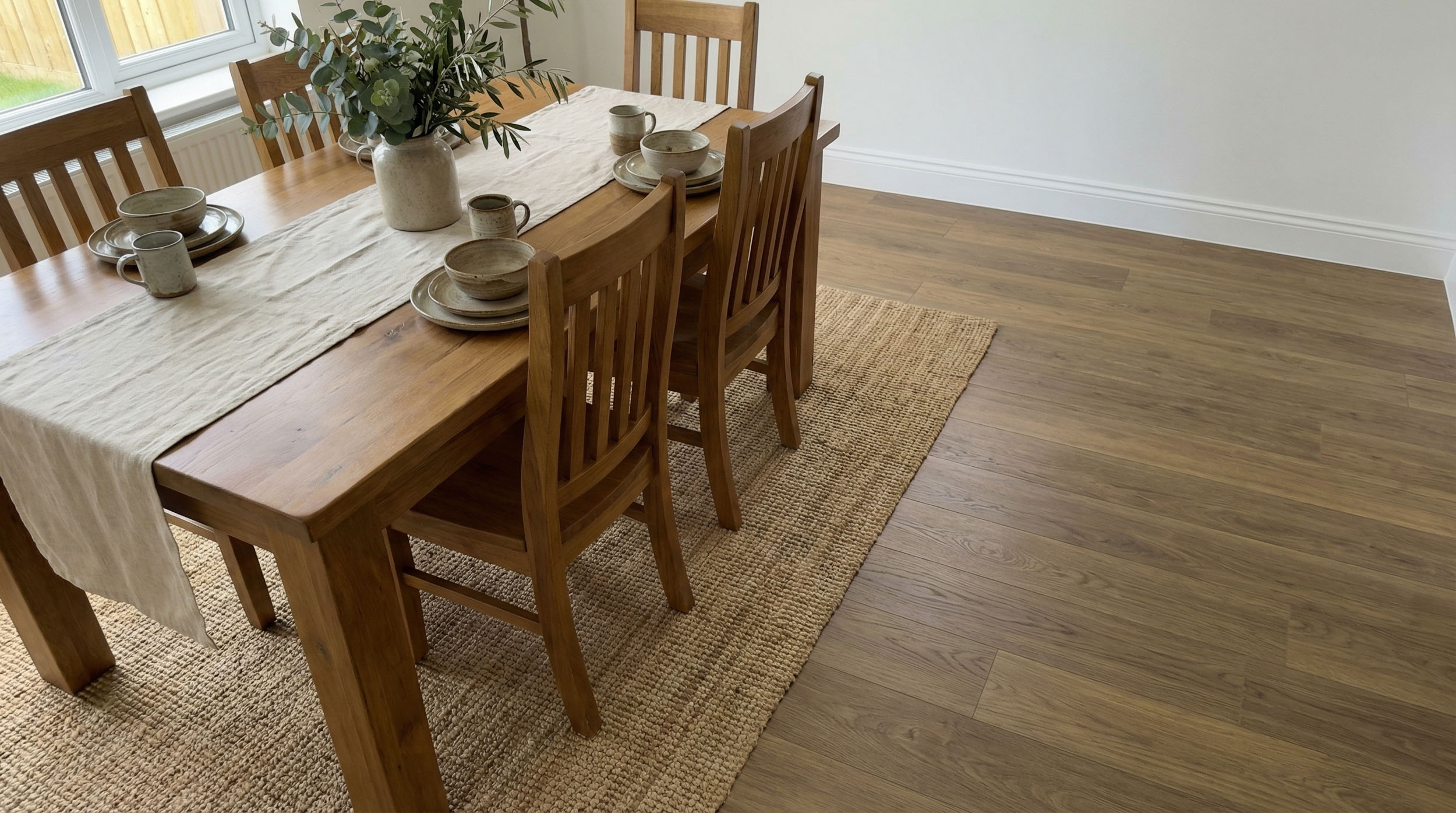 Die integrierte Trittschalldämmung sorgt für ein flüsterleises Laufgefühl und macht das Verlegen einfacher, da sie einen zusätzlichen Arbeitsgang überflüssig macht – das spart Zeit, Kosten und Nerven. Das praktische Drop-Down-Klicksystem ermöglicht dir außerdem eine schnelle und saubere Verlegung ohne Sägen. Mit Hammer, Cutter und etwas Geschick gelingt der Aufbau auch Laien spielend leicht. Die stabile Trägerplatte aus Rigid Vinyl mit nur 5 mm Stärke macht den Boden robust und flexibel: Selbst große Flächen bis zu 400 qm lassen sich ohne Probleme sowie Altbauten oder Räume mit niedrigen Türen gestalten.