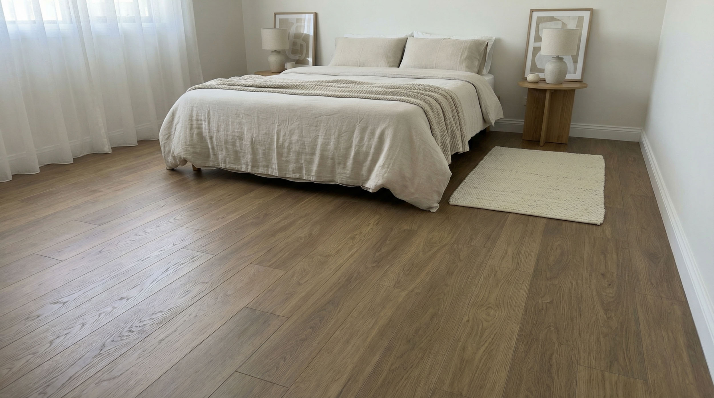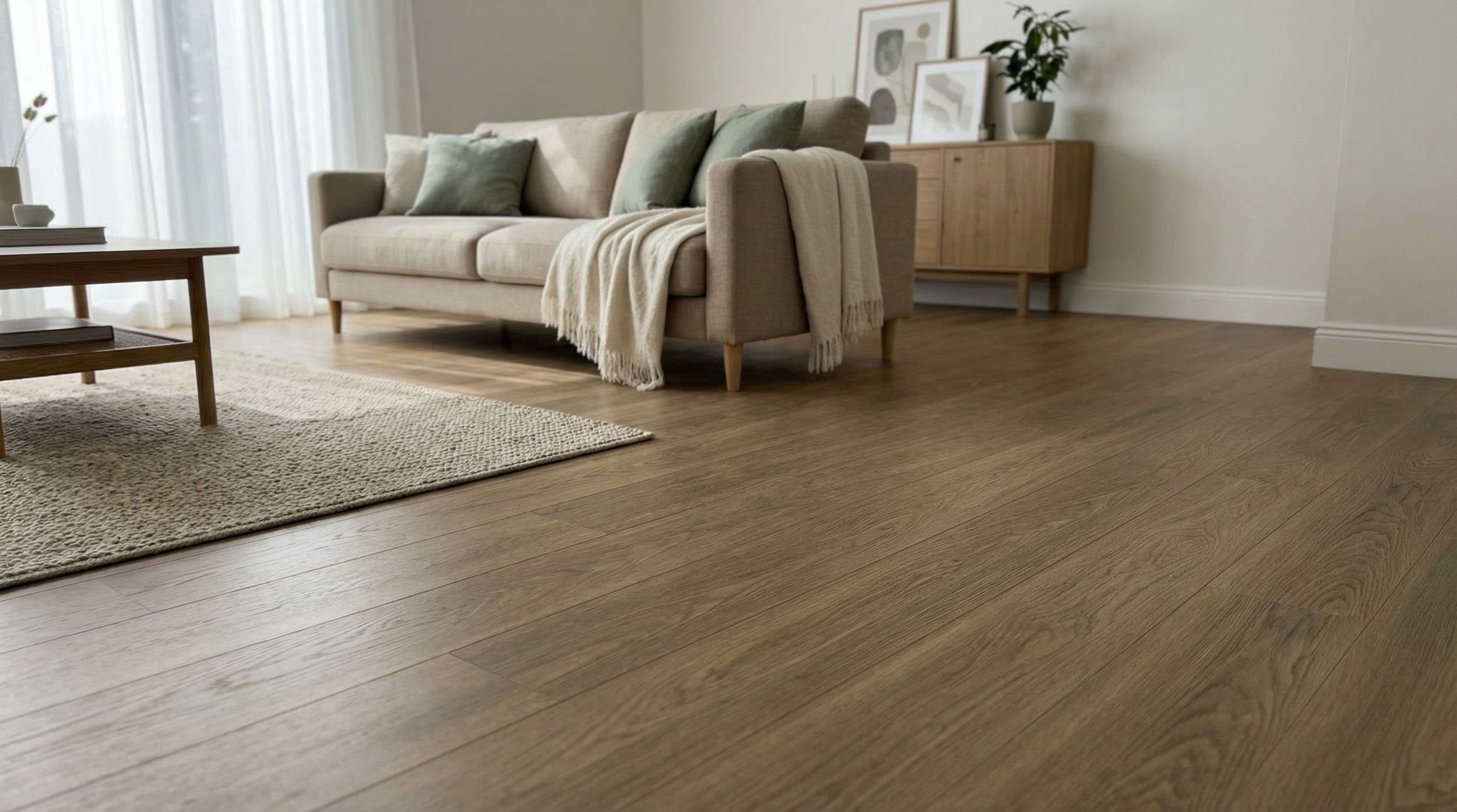 Das naturnahe Holzdekor sieht nicht nur täuschend echt aus, sondern fühlt sich dank der detailreichen 3D-Synchronprägung auch beim Berühren extrem authentisch an – ein Effekt, den kaum ein anderer Vinylboden erreicht. In Kombination mit der natürlichen Microfase und dem harmonischen Verlegemuster entsteht ein hochwertiger Dielen-Look, der optisch begeistert. Dazu bietet unser Premium-Vinyl ein angenehmes Barfußgefühl: fußwarm und ideal für die Nutzung mit Fußbodenheizungen.